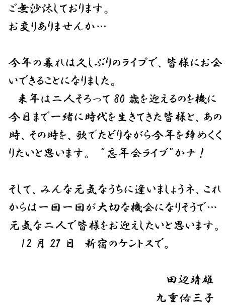 田辺靖雄&九重佑三子 「プレフェスタ80★80」