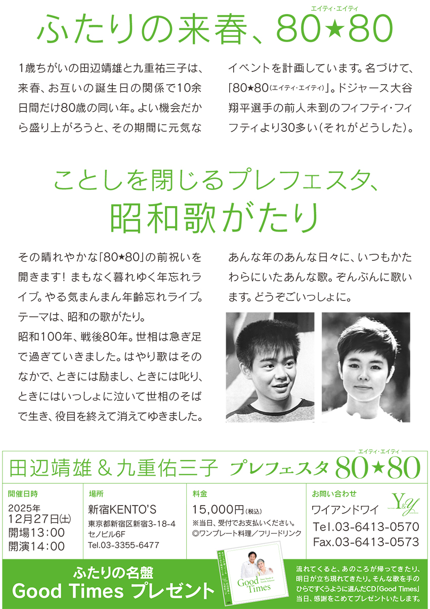 田辺靖雄&九重佑三子 「プレフェスタ80★80」